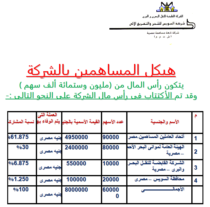 هيكل المساهمين بالشركة